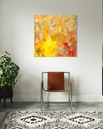 This original abstract painting is a one-of-a-kind statement piece, created in Italy by a professional woman artist. Rich in vibrant yellows, reds and soft golden textures, it adds energy, depth, and spiritual light to any space. Ideal for collectors, interior designers, and art lovers looking for emotional and intuitive art that tells a story. A bold and elegant expression of freedom, transformation, and inner peace.
