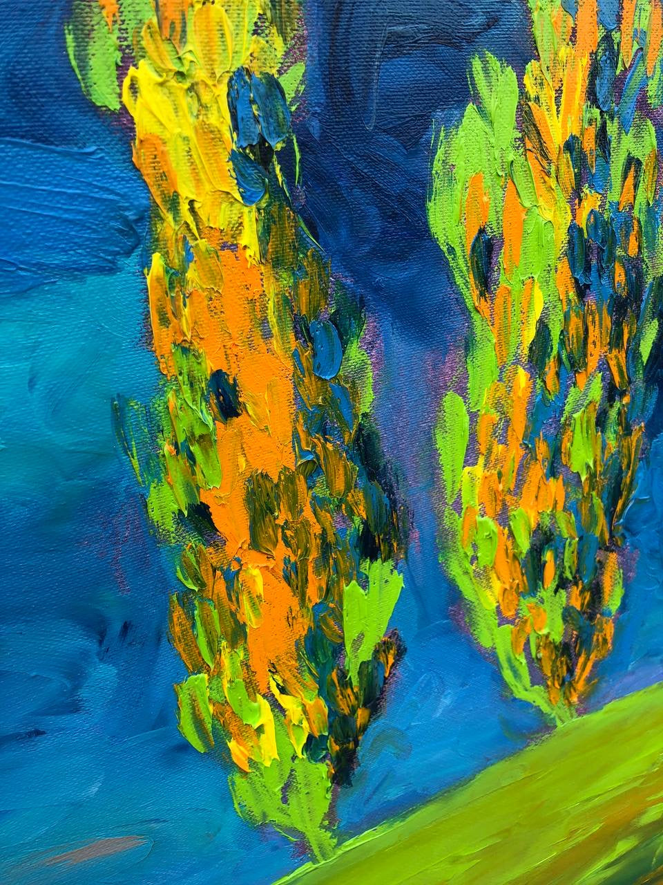 This painting invites you to pause, to immerse yourself in the beauty of the natural world, and to let the vibrant colors and textures wash over you like a cool breeze on a summer day. It’s a reminder that, no matter how turbulent life may seem, there is always a space of calm and clarity to return to — a space where the air is fresh, the trees stand tall, and the world feels full of possibility.