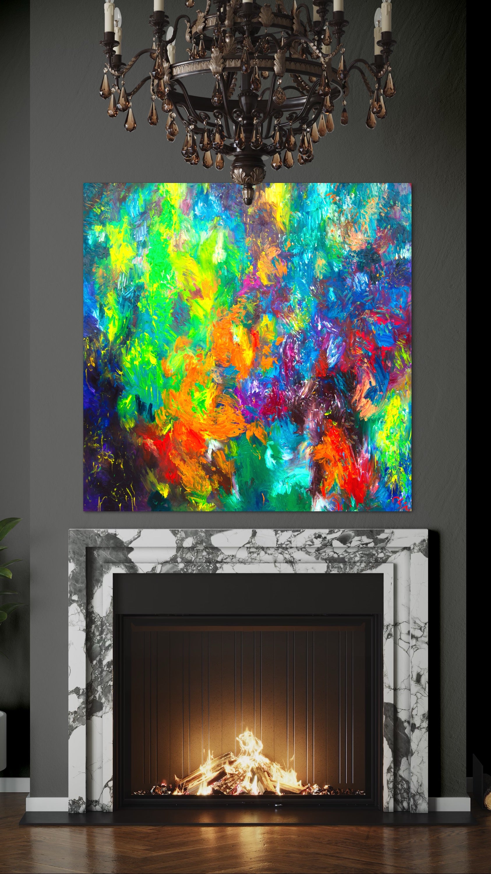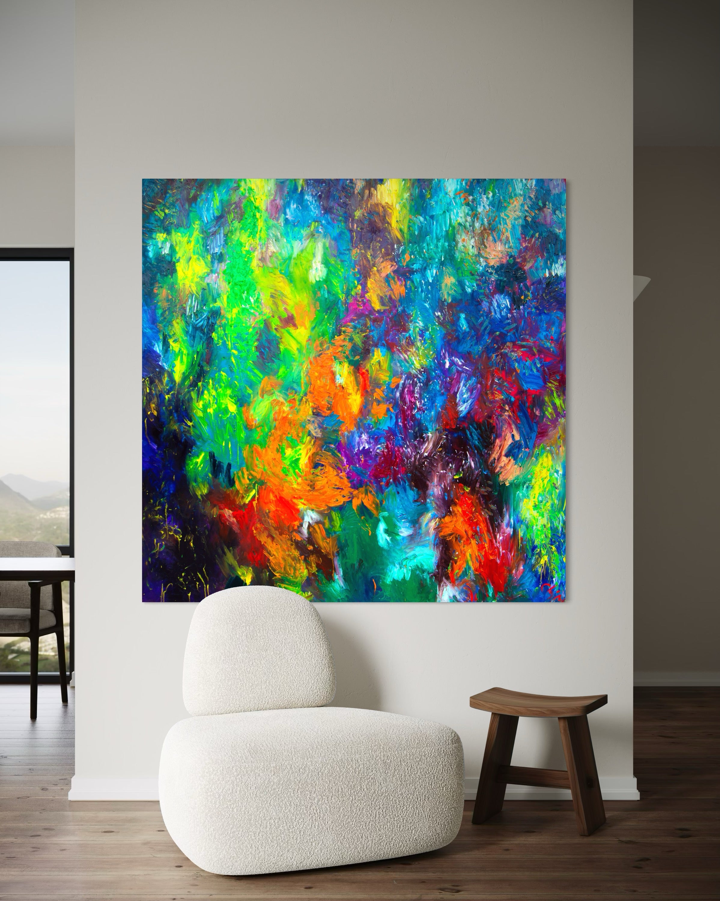 “Shades of Justice” is a vibrant large-scale abstract oil painting that captures the raw energy of social transformation and inner fire. Painted by Italian contemporary artist Chiara Magni, this work is part of her expressionist collection and ideal for modern luxury interiors. Bold, colorful, and emotionally charged — a standout piece for art collectors and designers seeking unique wall art with impact.