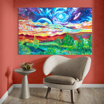 "Bright Expressionism" is a new style of painting developed by Italian artist Chiara Magni which combines elements of Impressionism and Expressionism, characterized by its vibrant and intense use of color. This style is distinct in its imaginative and emotional approach, aiming to convey joy and vivacity. Bright Expressionism deviates from traditional color rules, creating imaginative scenes that evoke feelings of freedom and playfulness.