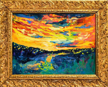Commission a Similar PieceCold Sand is like a memory of walking along the beach as the day says its last goodbyes. The sky is ablaze with colors you might find in a cozy hearth, the kind that invites you to gather around and share stories. This painting is the echo of that warmth against the cool, darkening sand – a contrast we all feel when we wrap a warm blanket around our shoulders on a brisk evening. In this oil on canvas, every shade of orange, red, and yellow reaches out to you like the final, comforting rays of sunshine, while the cool blues and purples of the earth remind us of the day’s gentle end. It's a daily rhythm we all know – the bustling day giving way to a quiet, reflective evening. Owning Cold Sand is like keeping a piece of that universal feeling with you. It's not just a scene; it's an experience we've all shared, a moment that's touched each of our lives. This painting is a friend that understands the beauty of day and the mystery of night, offering a space for you to pause and feel connected to the simple, yet profound cycles of life.