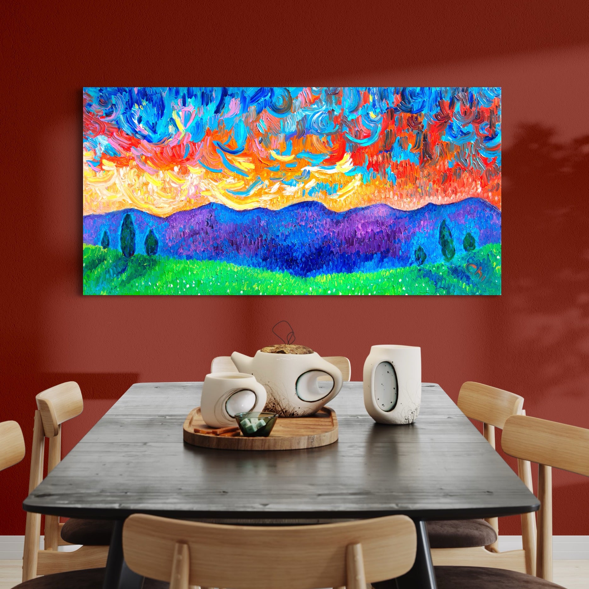 "Bright Expressionism" is a new style of painting developed by Italian artist Chiara Magni which combines elements of Impressionism and Expressionism, characterized by its vibrant and intense use of color. This style is distinct in its imaginative and emotional approach, aiming to convey joy and vivacity. Bright Expressionism deviates from traditional color rules, creating imaginative scenes that evoke feelings of freedom and playfulness.